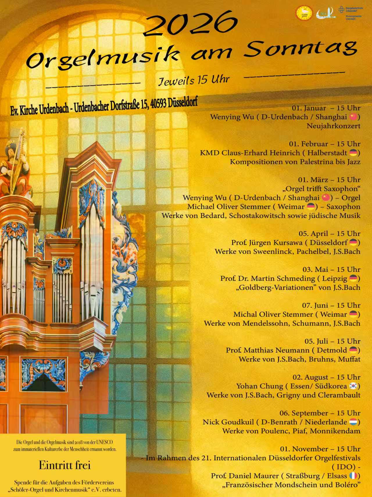 | Orgelkonzerte die im Jahr 2011, 2012, 2013, 2014 2015, 2016, 2017, 2018, 2019, 2020, 2021, 2022, 2023, 2025 und 2026 schon stattgefunden haben |
